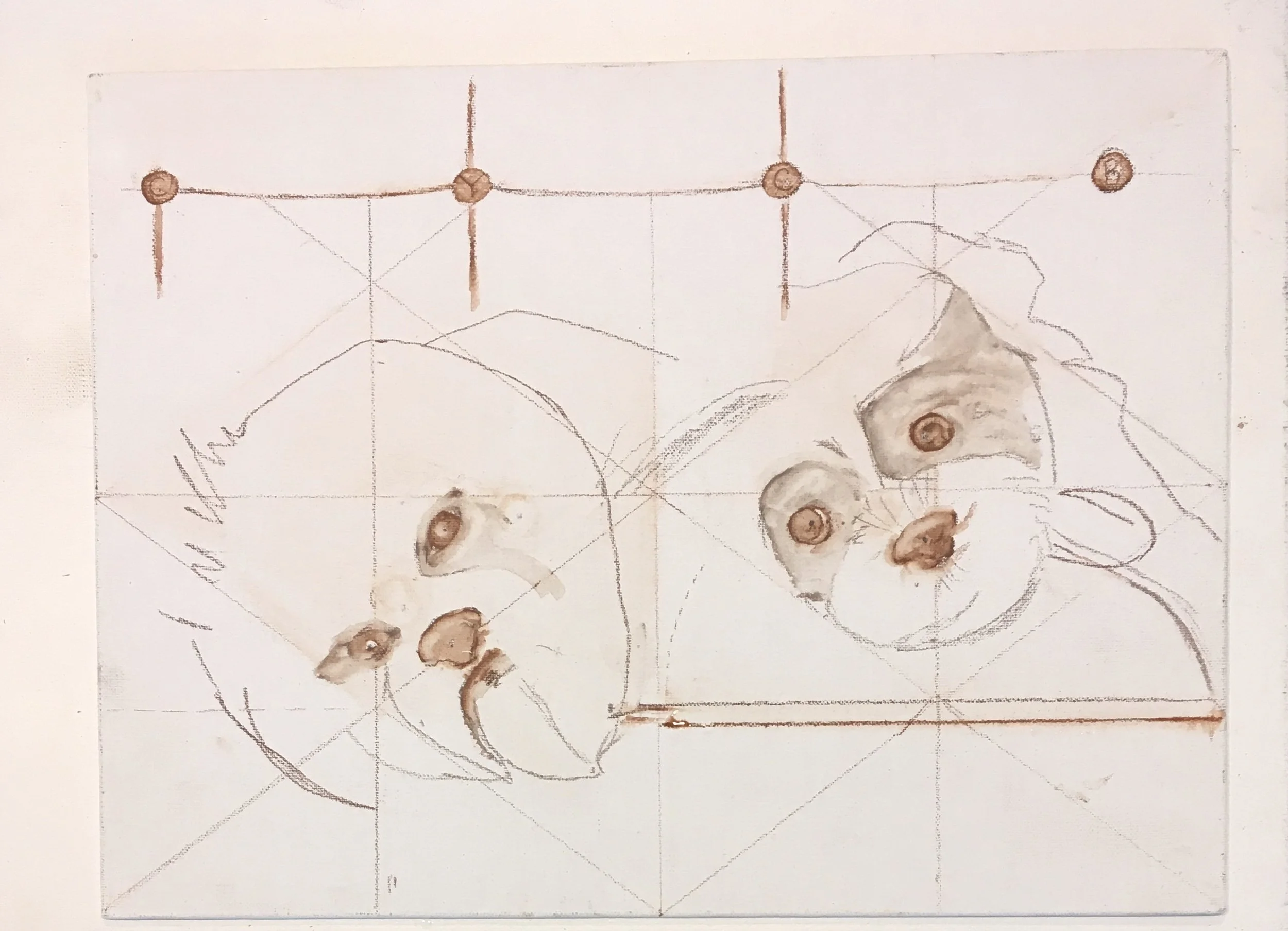 Watercolor pencil is very flexible for image adjustments and shading with a brush and water. Very helpful when using a grid for proportions and positioning.